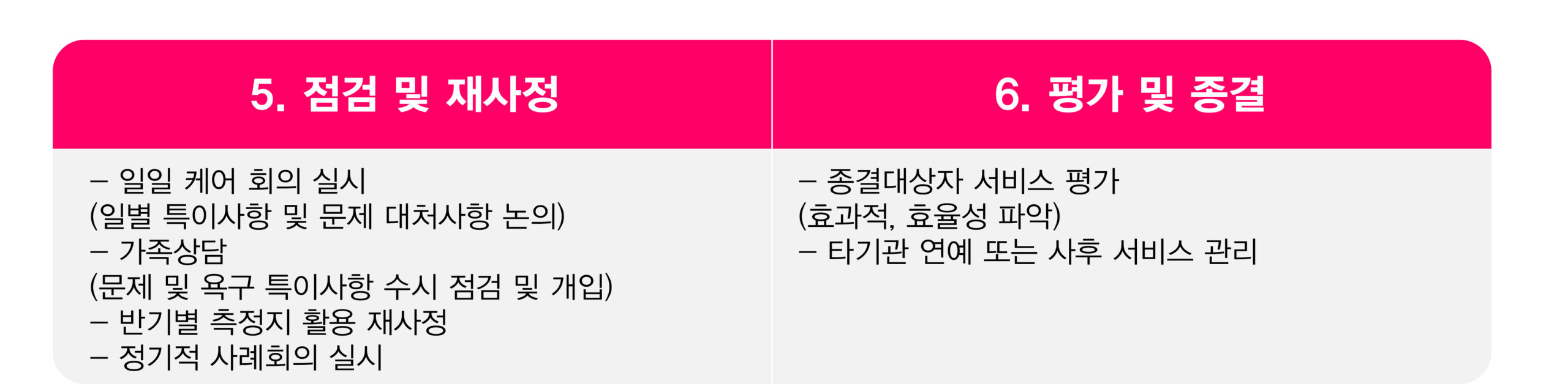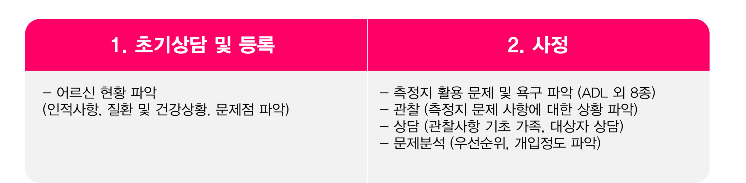 어르신들의 문제 및 욕구에 적합한 사회복지전문서비스 및 지역자원을 연계하여 어르신을 중심으로 하는 어르신, 가족, 환경(지역사회) 등을 통합적으로 관리하는 체계입니다.