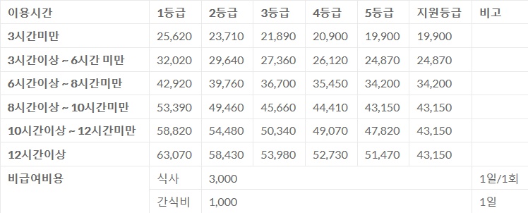 ※ 인지지원등급 수급자가 주·야간보호 내 치매전담실을 월 9일(1일 8시간 이상) 이상 이용한 경우, 월 한도액의 30%범위내에서 추가 지원도 가능하며,월 최대 12일정도까지 주간보호 이용이 가능합니다.
